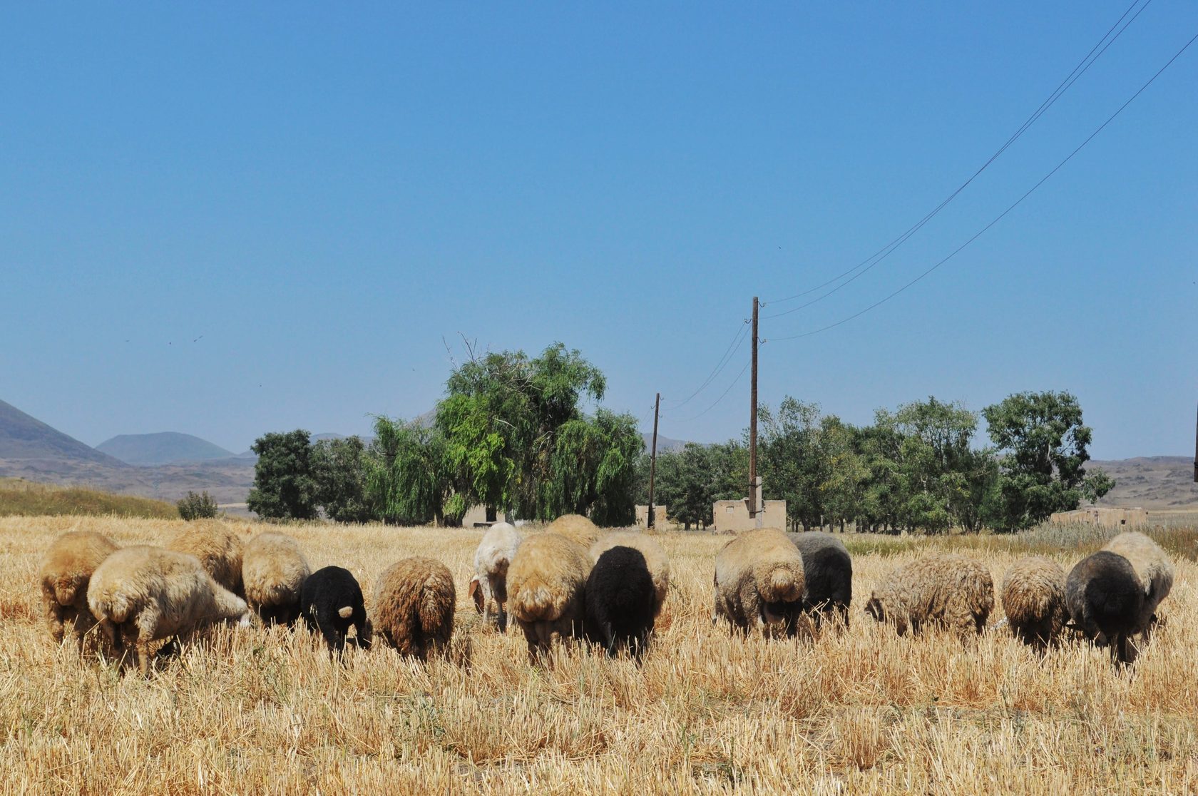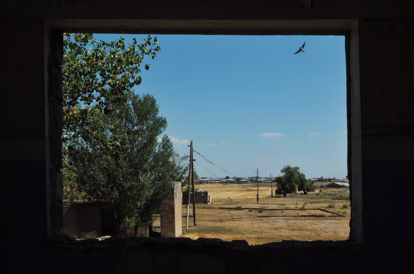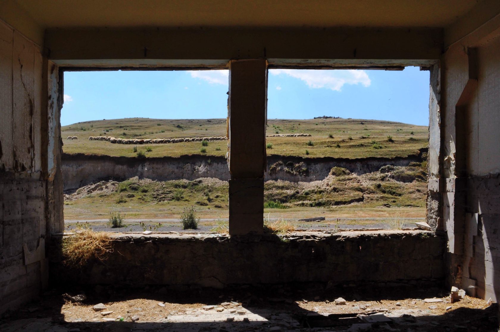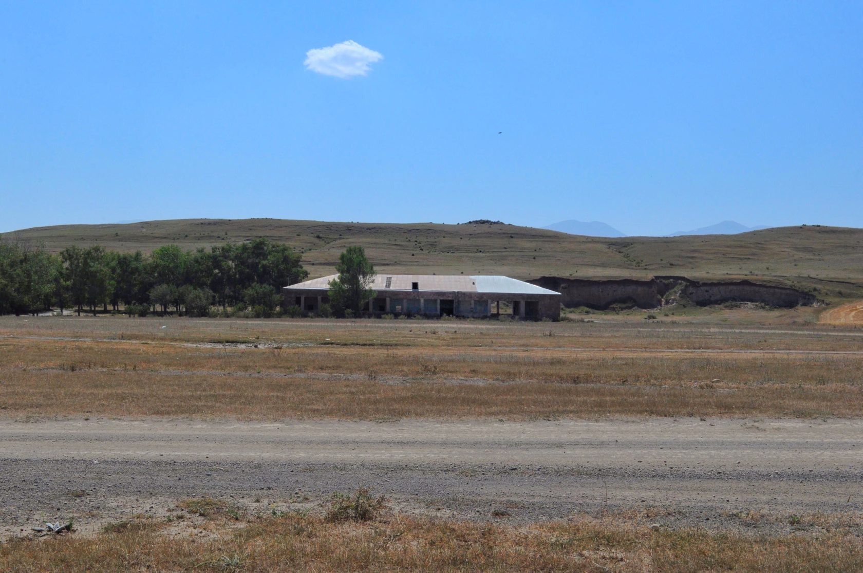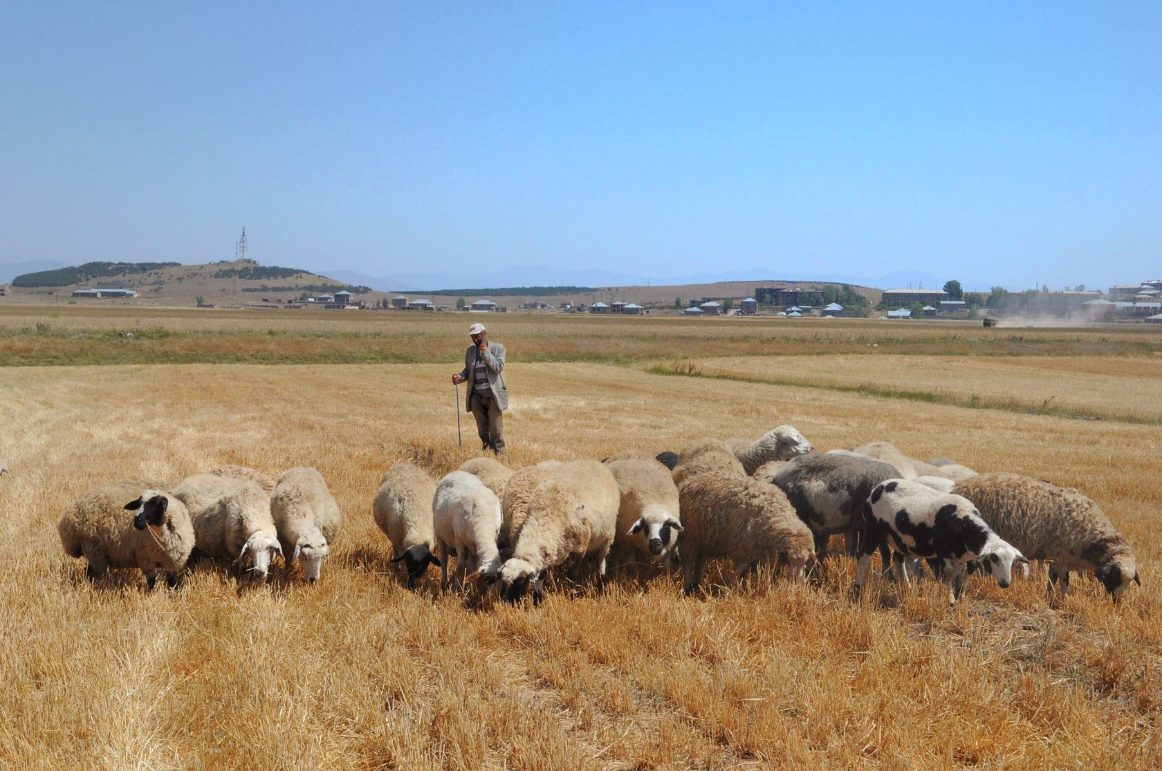 Ամայացած դաշտի լռությունը, ոչխարի վզին կախված զանգի ձայնից բացի, երբեմն ընդհատում են օդանավակայանի թռիչքուղի մտնող գյուղատնտեսական մեքենաները։